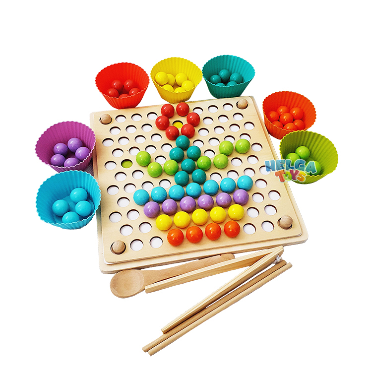 Acest joc montessori de indemanare cu bile si asociere poate reprezenta un cadou deosebit pentru copii cu varsta intre 3 – 6 ani.