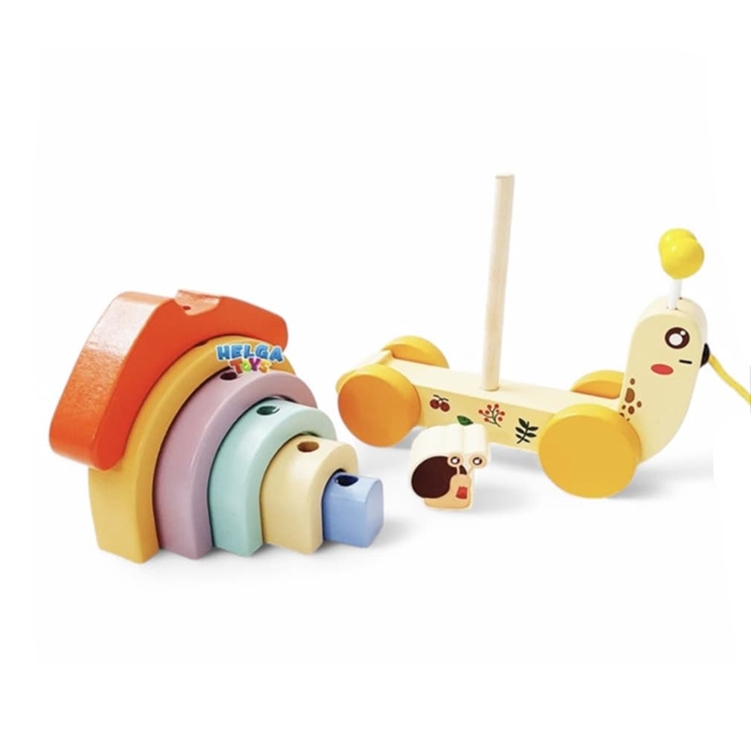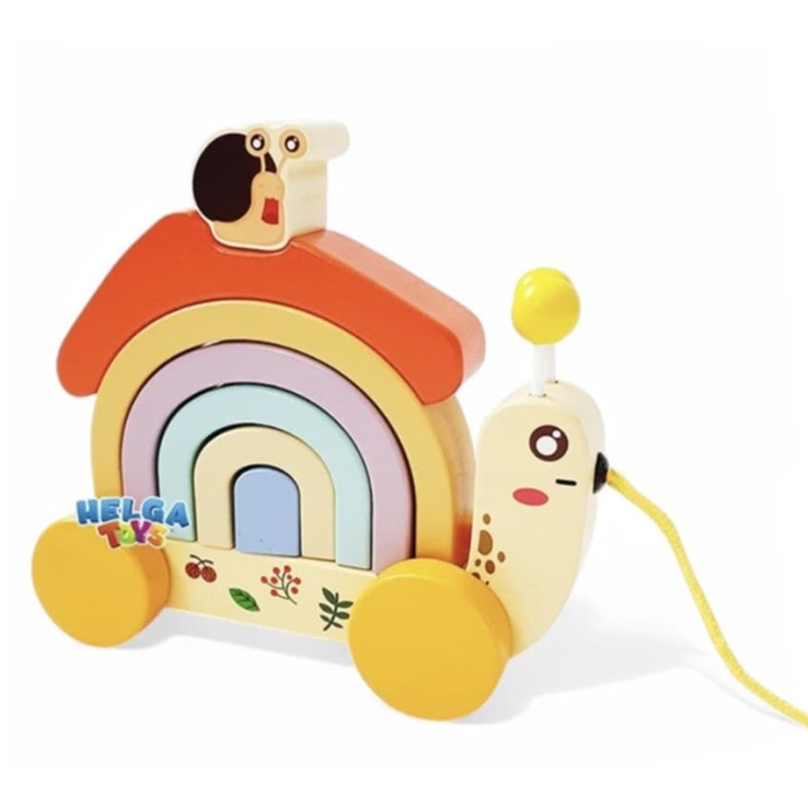 Aceasta jucarie multifunctionala este compusa dintr-un melc simpatic cu cochilie in forma de curcubeu pastel. Formata din semicercuri din lemn care pot fi suprapuse, stivuite sau asezate in diverse forme creative.